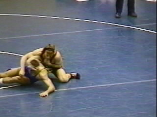 Here the attacker clears his right arm through and does a double knee drop level change.