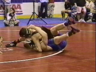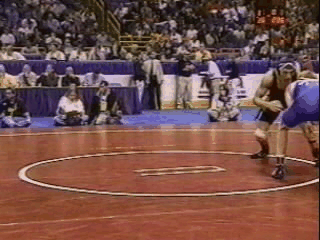 Although partially off camera, the attacking wrestler in black has perfected an advanced way to set up his headlock.