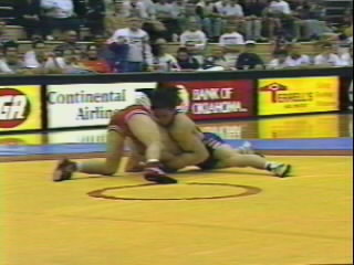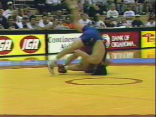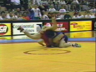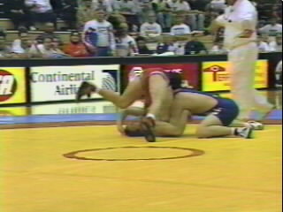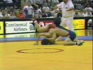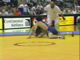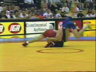 As Cross is forced to the mat with a whizzer, he caps the move by locking his fist above the opponent's shoulder.